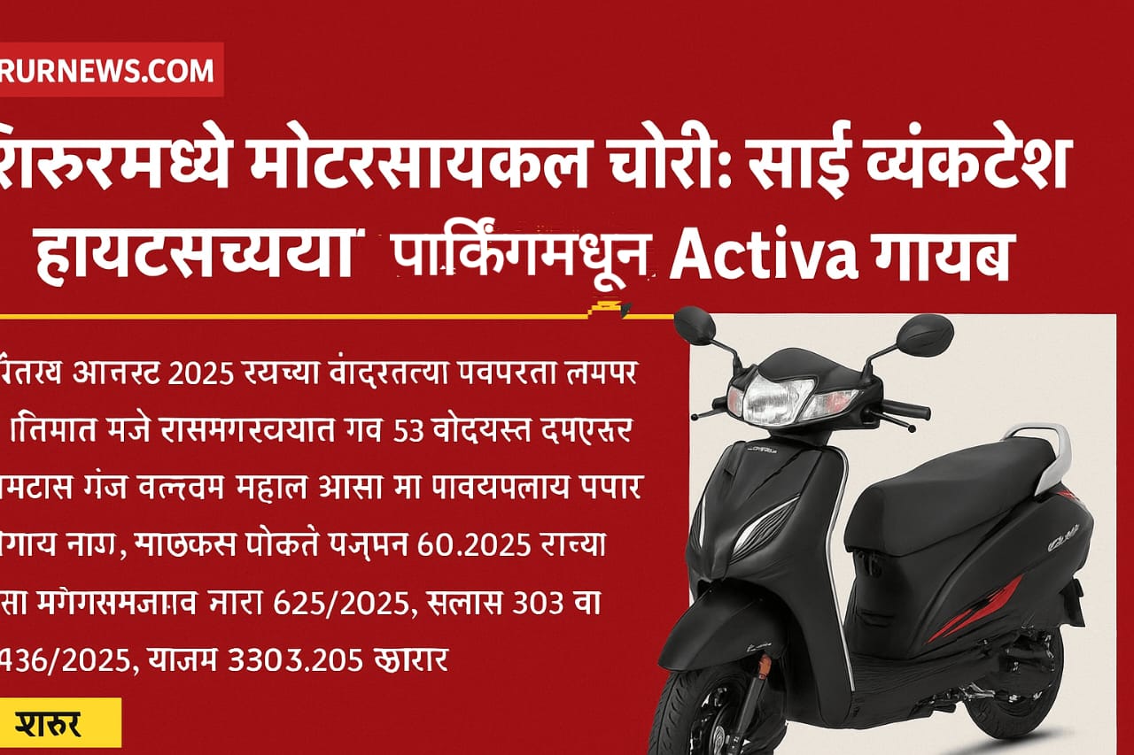 शिरूरमध्ये मोटारसायकल चोरी : साई व्यंकटेश हायट्सच्या पार्किंगमधून होंडा Activa गायब शिरूरमध्ये मोटारसायकल चोरी घटना वाढल्या! शिरूर ,दिनांक १ सप्टेंबर २०२५: (प्रतिनिधी) शिरूर शहरात पुन्हा एकदा वाहनचोरीची घटना घडली आहे.…